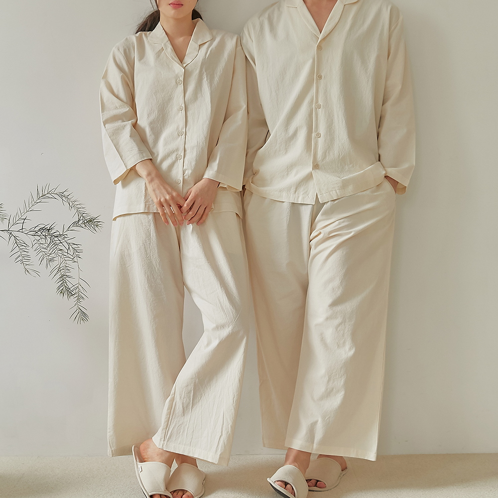 [코르] 순면 남녀 홈웨어 긴소매 세트 아이보리