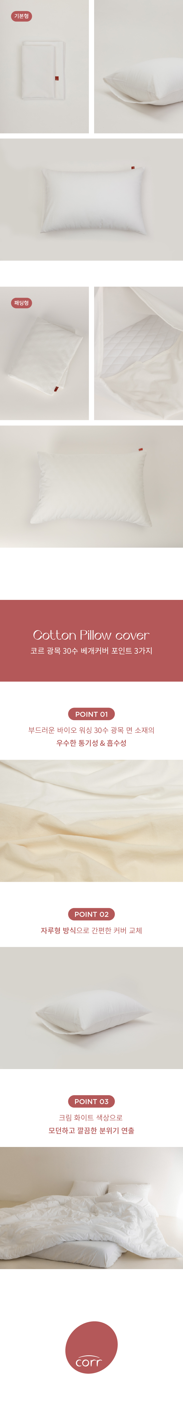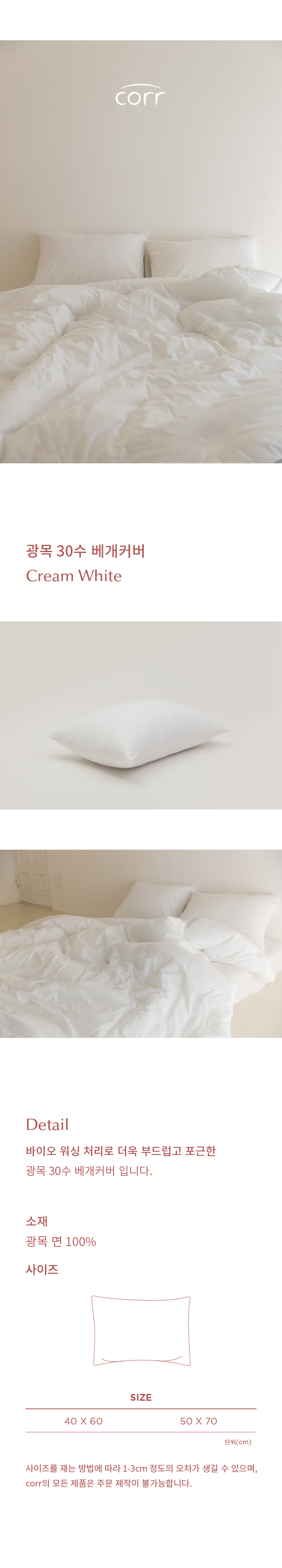 [코르] 광목 30수 베개커버 크림화이트