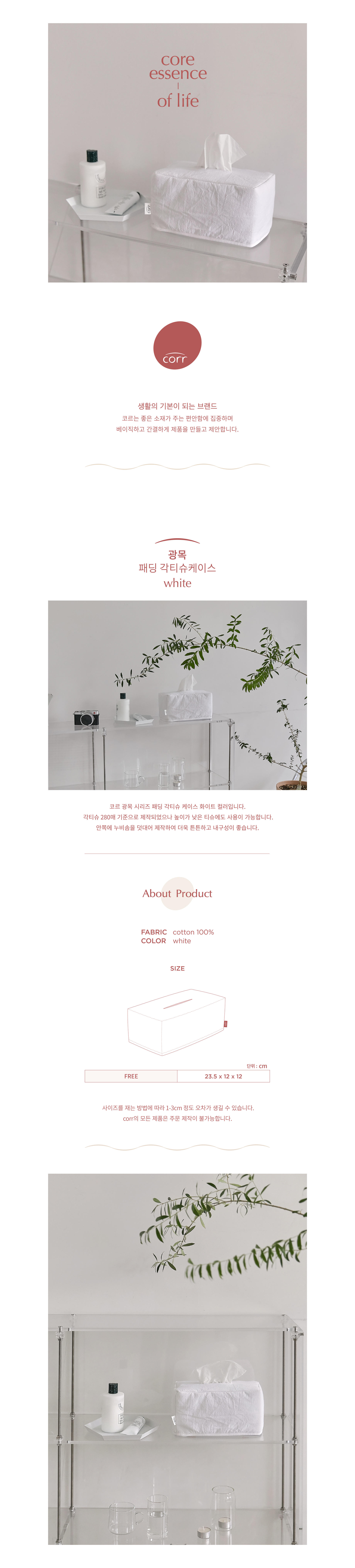 패딩 솜이 덧대어져 있는 패딩 각티슈케이스 화이트 컬러입니다.