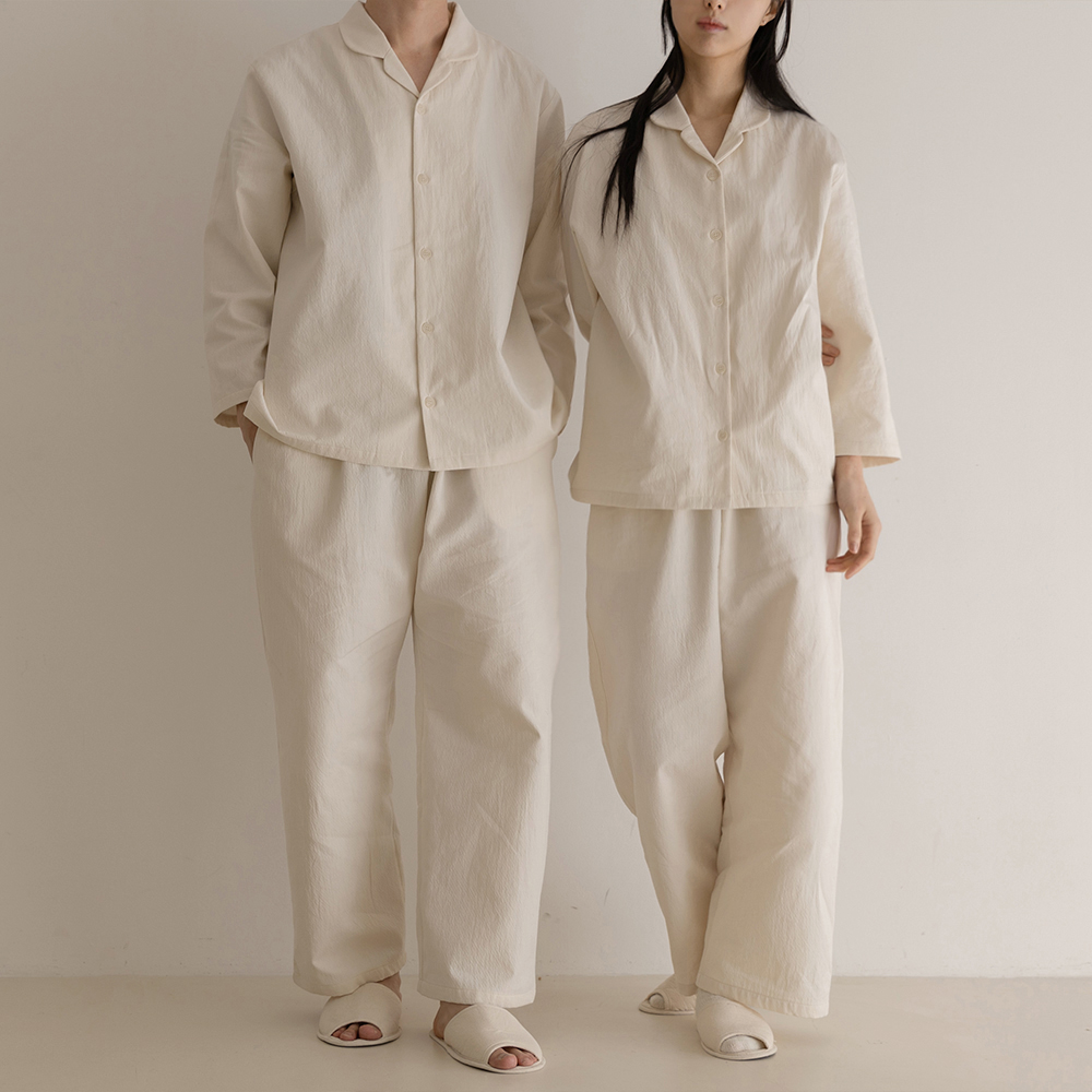 [코르] 더블코튼 남녀 홈웨어 상하의 세트 아이보리
