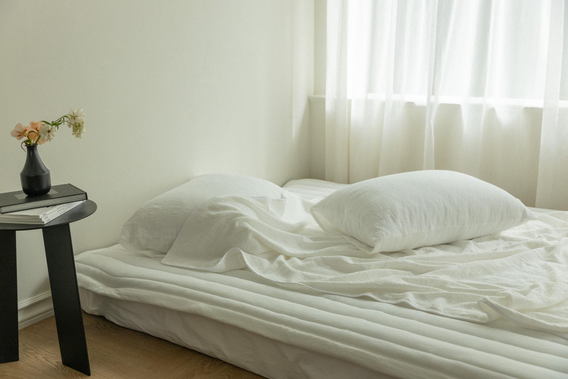 무명 홑이불&베개커버는 10수 원단으로 조금 더 도톰하고 성글며,